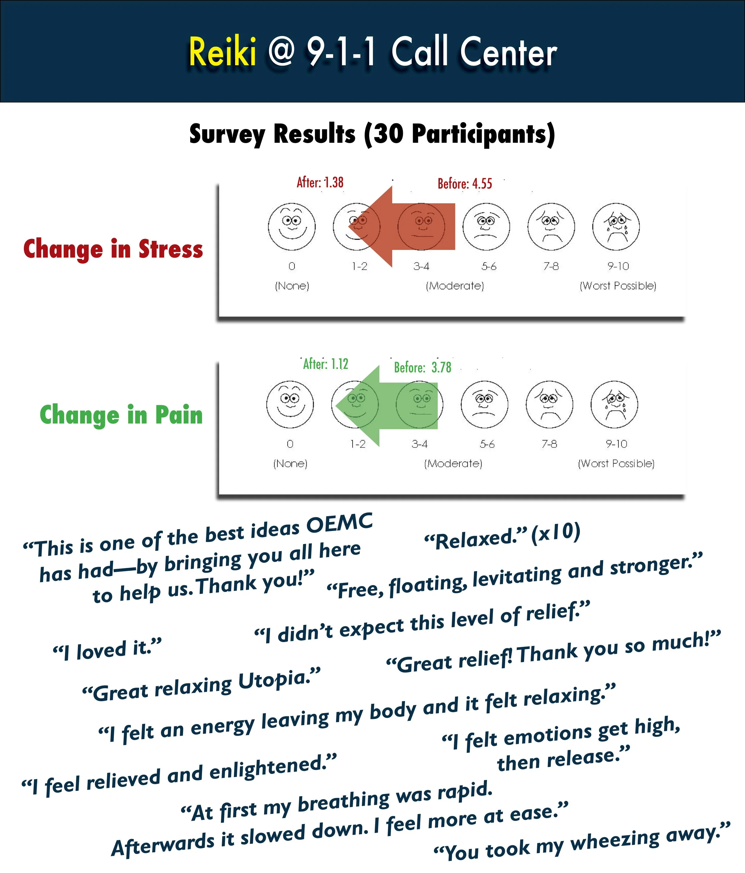 We had such a wonderful time working with the day shifts, we came back to see if we could get any takers for the night shift change. We did—30 of them! See their priceless feedback below.