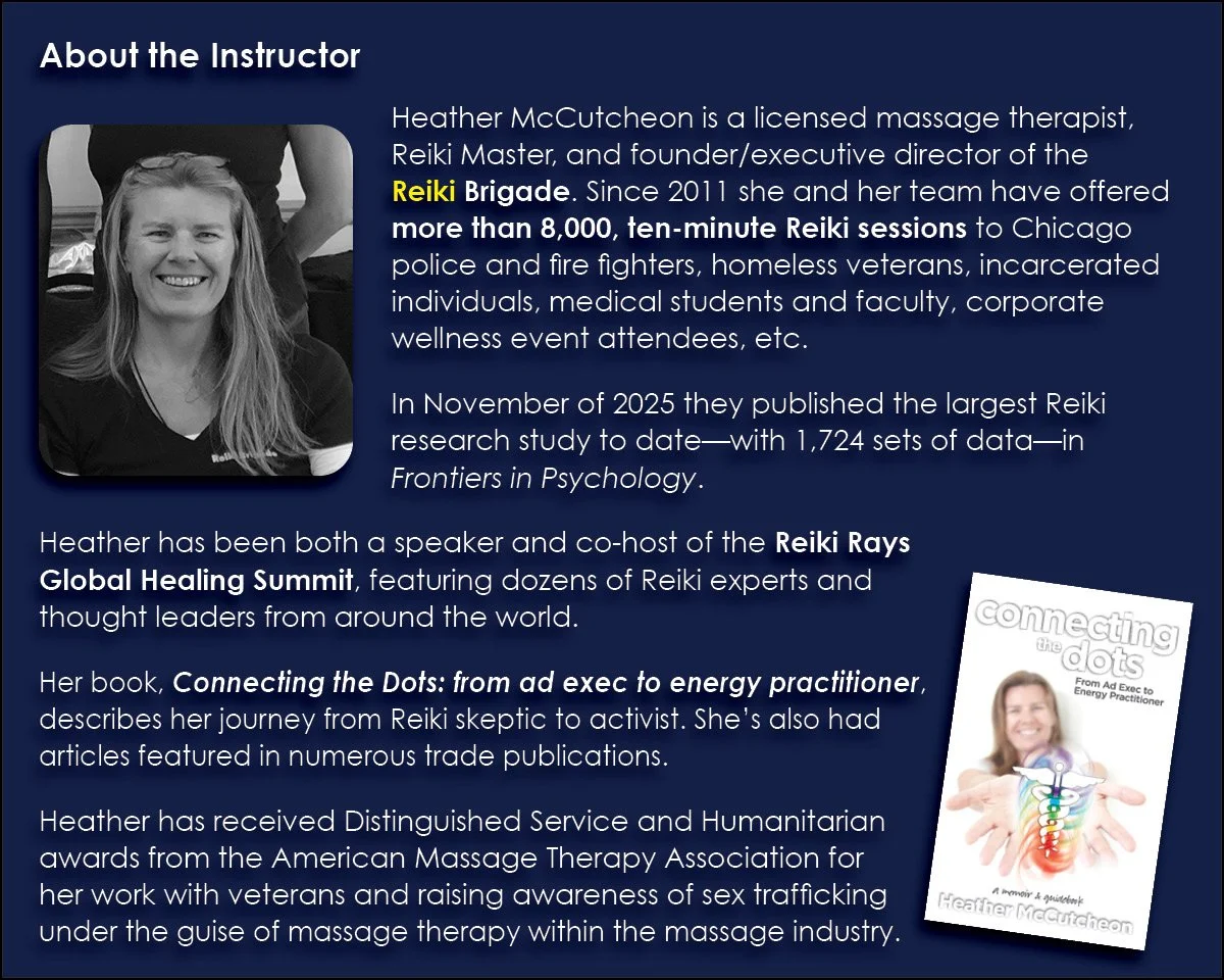 Text, class materials, Reiki session, fun, and a special gift are included.